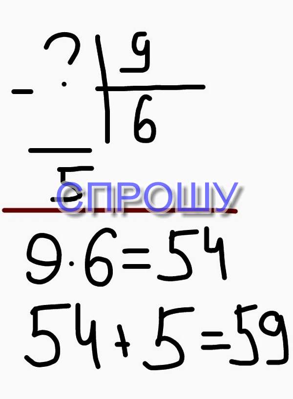 Чему равно делимое, если делитель равен 9, неполное частное 6, а остаток 5 ?