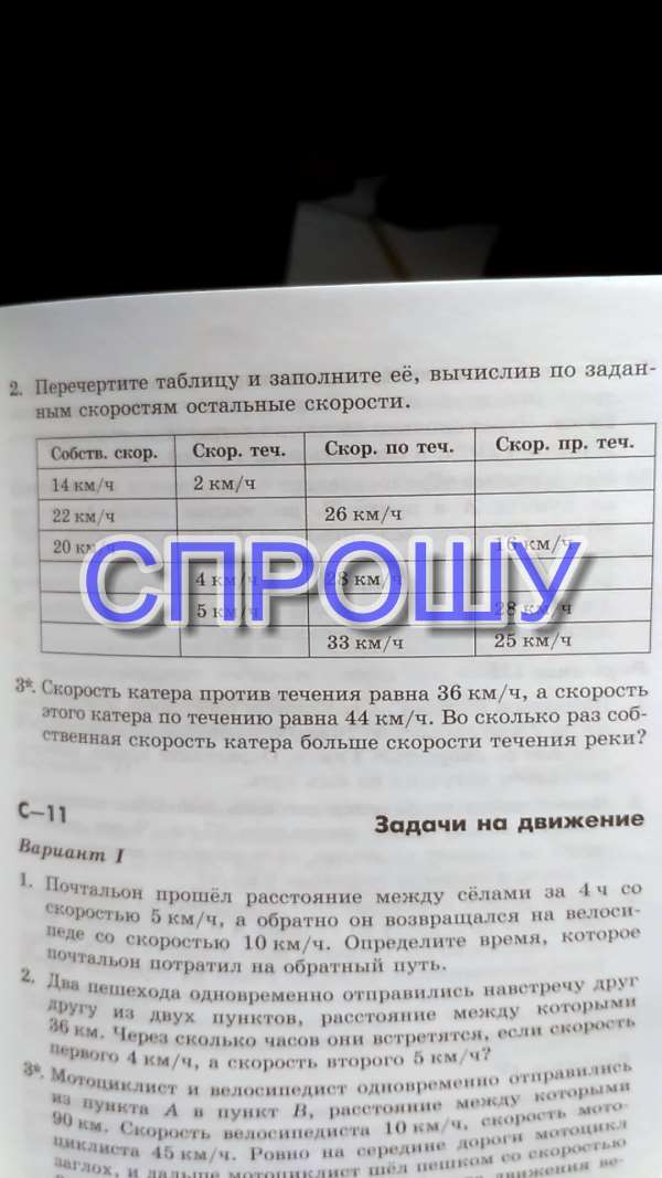 Перечертите таблицу и заполните её, вычислив по заданным скоростям остальные скорости.