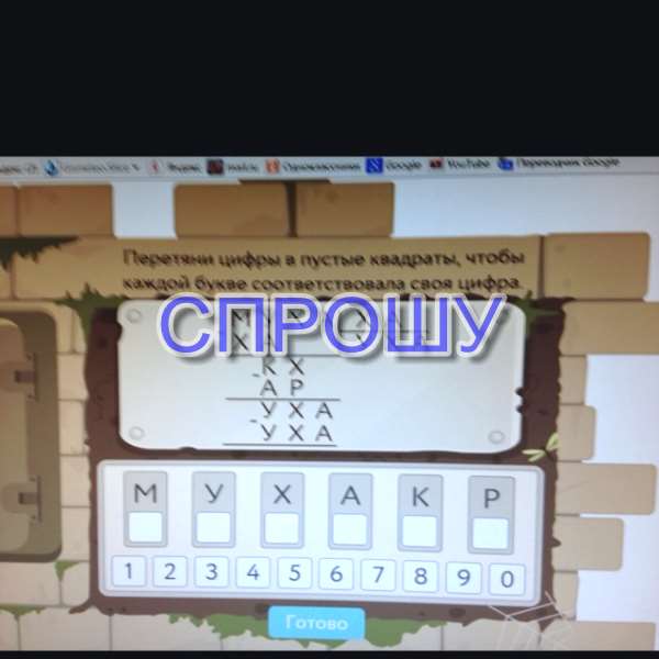 Перетяни цифры в пустые квадраты чтобы каждой букве соответствовала своя цифра