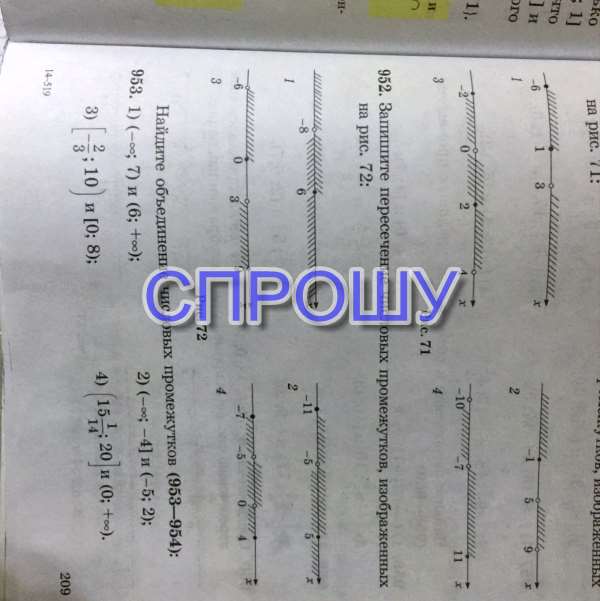 Запишите пересечение числовых промежутков изображённых на рис 72