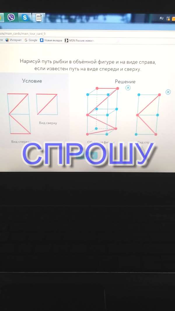 В объемной фигуре внизу черта идет прямо, как и первое звено - горизонтально по низу