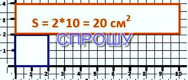 S = a*b = 2*10 = 20 см² - ОТВЕТ