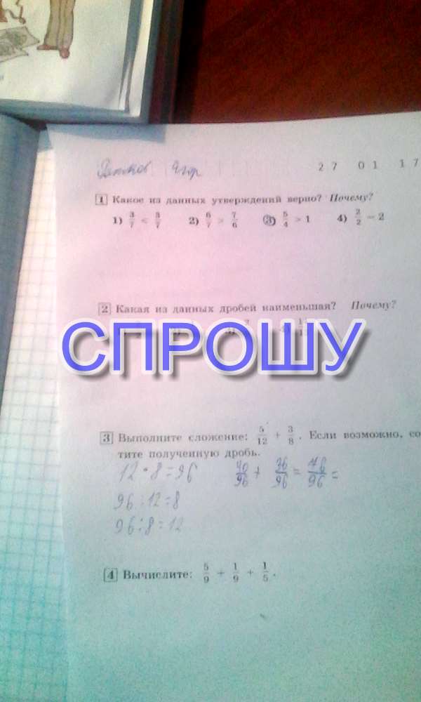 1) под цифрой 3) - потому что единица больше любой правильной дроби.