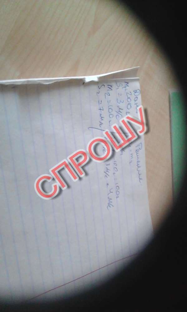 10. Шарик массой 200г движется со скоростью 3 м/с навстречу шарику массой 100г, скорость которого 7 м/с. Определите скорость шариков после абсолютно неупругого удара.