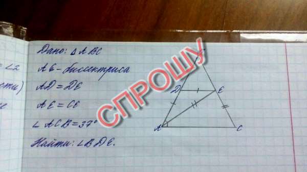 Угол BDE равен 106 градусам