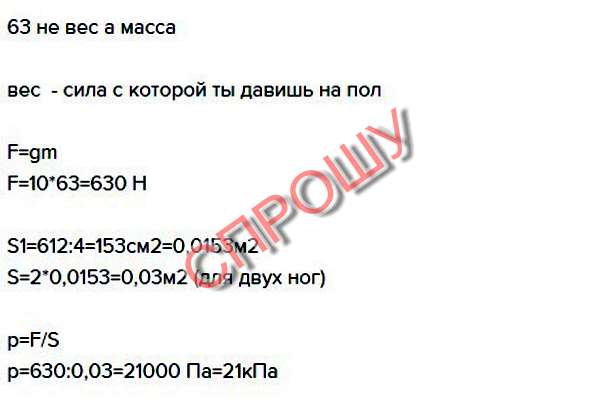 Зная свою массу и площадь ботинка,вычислите,какое давление вы производите при ходьбе и стоя на месте.Указание.Площадь опоры ботинка определите следующим образом. Поставьте на лист клетчатой бумаги и обведите контур той части подошвы,на которую опирается нога.Сосчитайте число полных квадратиков,попавших внутрь контура,и прибавьте к нему половину числа неполных квадратиков,через которые прошла линия контура.Полученное число умножьте на площадь одного квадратика (площадь квадратика 1/4см(в квадрате))и найдите площадь подошвы!