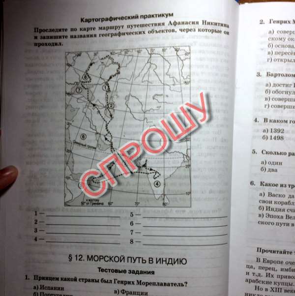 1-река Волга.2-Каспийское море.3-Аравийское море.4-Индия.5-Африка.6-Аравия.7-Чёрное море.8-река Днепр