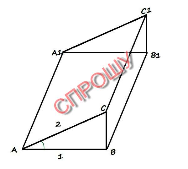 Основанием прямой треугольной призмы ABCA1B1C1 является прямоугольный треугольник ABC с гипотенузой AC, равной 2. Найдите угол между плоскостями граней ABB1A1 и ACC1A1 призмы, если AB = 1 (Ответ должен получиться 60)