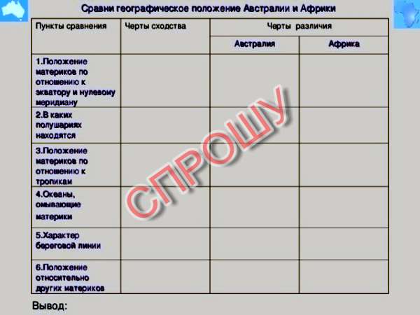 вот !!! сравнение Африки и Австралии