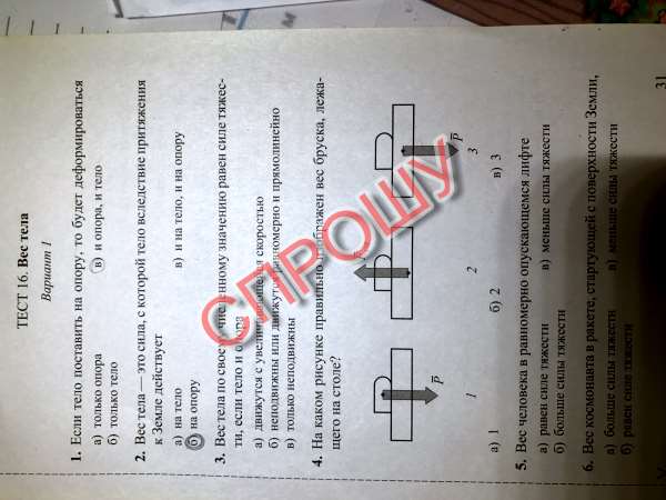 Физика. Тема-Вес тела! 6 заданий! Нужно выбрать букву! Помогите((( я не могу. Даю 20 баллов!!
