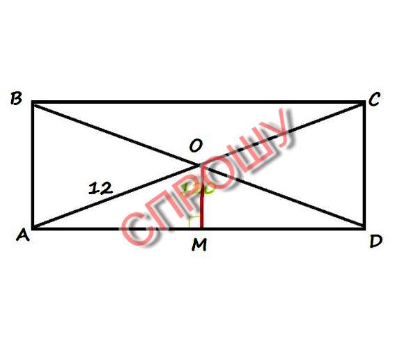 Угол AOM - 60 градусов (120 / 2 тк OM биссектриса) косинус 60 равен 0,5 - значит OM = 6 (12 * 0.5).