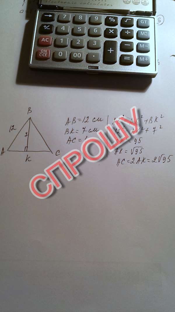 Боковая сторона равнобедренного треугольника равна 12 см, а высота, проведенная к основанию 7 см. Найдите основание треугольника.