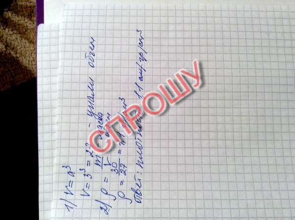 Ребро куба 3 см, масса 30 г. Найдите плотность куба?