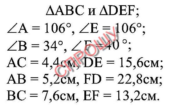 Задача: Подобны ли треугольники ABC и DEF (дано на картинке)