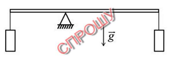 Однородный стержень длиной 3 м и массой 10 кг опирается на опору и находится в равновесии (см.рис.). На одном конце стержня (левее опоры) висит груз массой 50 кг, а на другом (правее опоры) – массой 20 кг. Найти расстояние между опорой и точкой подвеса груза массой 50 кг к стержню. (можно только ответ)