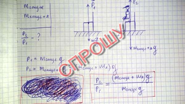 Измерьте, какое давление на пол оказывает стул. Во сколько раз увеличивается это давление, когда вы садитесь на стул? Если у вас есть напольные весы, то измерение вашей массы и массы стула не вызовет проблем (можно встать на весы, держа стул в руках) Стул можно взвесить также с помощью пружинных весов.
