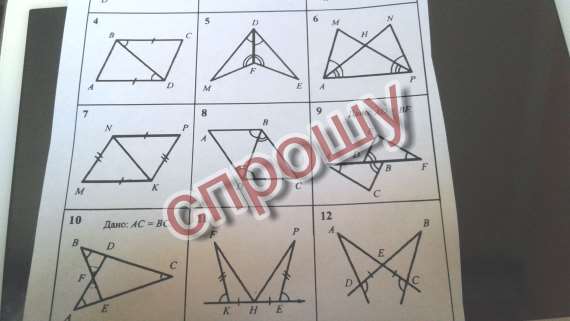 Найти пары равных трегольников и доказать их равенство.