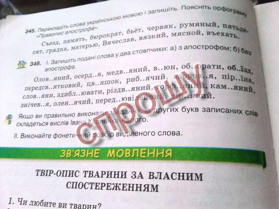 Срочно!!!! Просто выпишете из упражнения 346 на фото слова в которых нужен апостроф