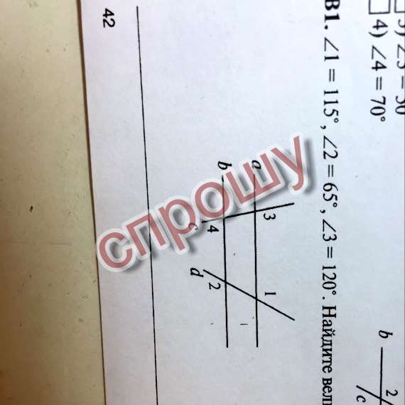 Угол 1 = 115 градусам,угол 2 = 65 градусам, угол 3 = 120 градуса. Найдите величину угла 4.