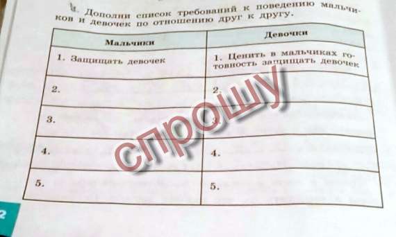Дополни список требования к поведению мальчиков и девочек по отношению друг другу