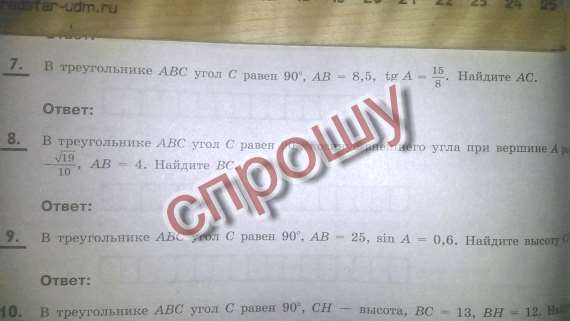 7) tg A= BC/AC=15/8