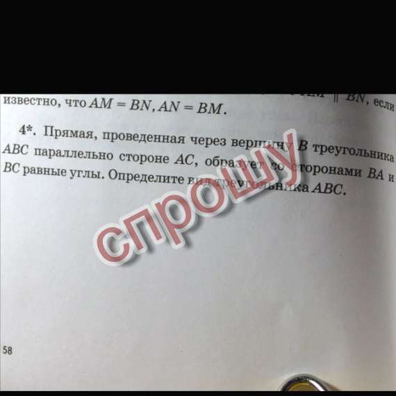 Темой проведённой через вершину в треугольника ABC параллельно стороне AC образует со сторонами BA и BC равные углы Определите вид треугольника ABC. Помагите пожалуйста плиз