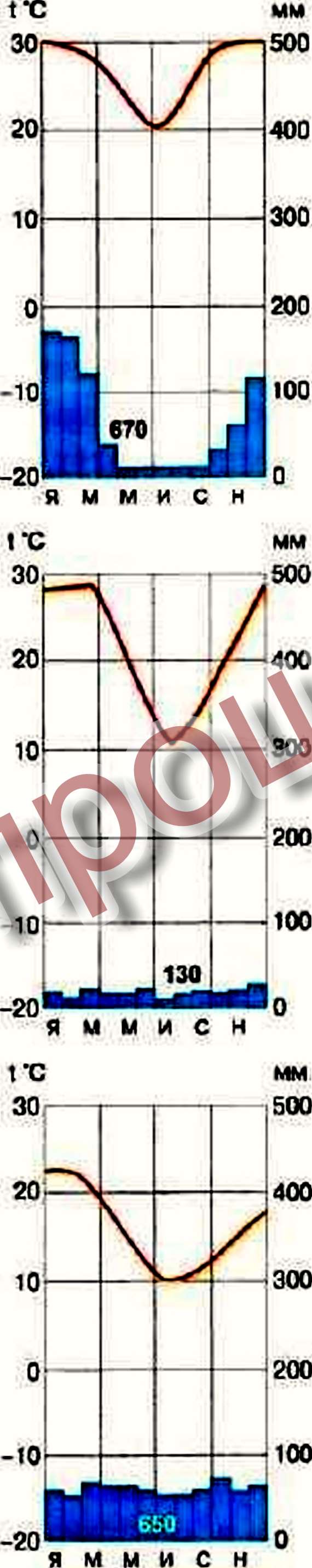 2 На второй климатограмме видно,что температуры в летний период поднимаются до 30°,а в зимний понижаются до 10°.Осадков выпадает крайне мало,около 130 мм в год.Эта климатограмма характерна для тропического пустынного климата Австралии.