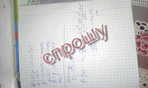 Көлемі 20л баллондағы температурасы 17°С қысымы 830кПа сутегінің массасы ( М(Н