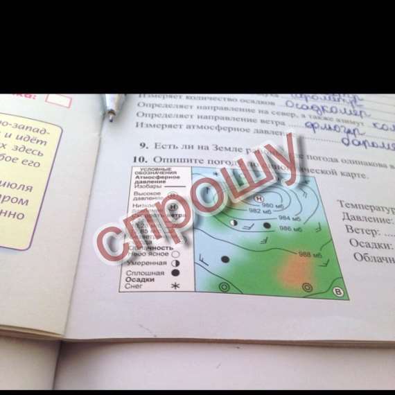 Опишите погоду по синоптической карте: