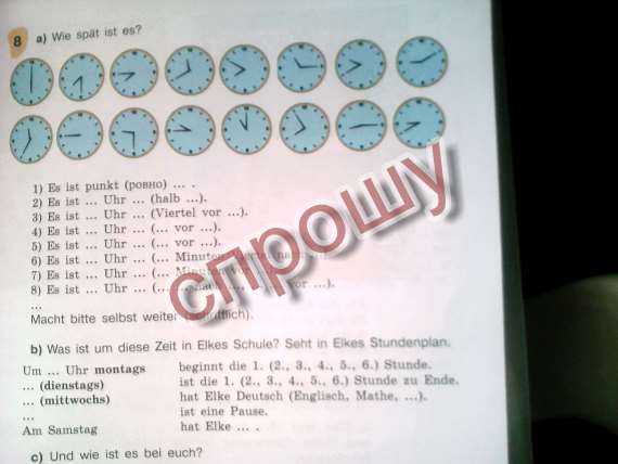3) Es ist viertel vor acht.