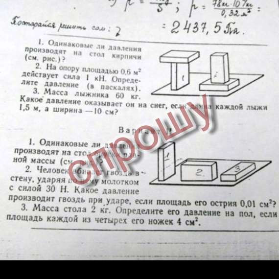 1.Нет, так как чем меньше площадь, тем больше давление, а чем больше площадь, тем меньше давления, а бруски стоят по-разному