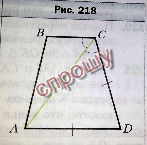 На рисунке 218 угол ACB равен углу АСD, AD равен СD. Докажите что BC парарельный AD. дам 30 б.
