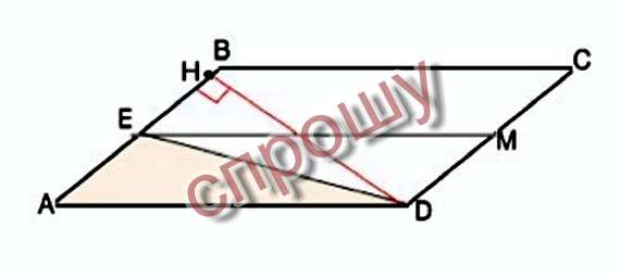 Площадь параллелограмма abcd равна 10. точка е-середина стороны ab. найдите площадь треугольника aed