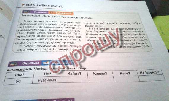 Помогите я не могу сделать 4 тапсырма оно связано с 3 заданием.желательно по 2 слова на каждый вопрос