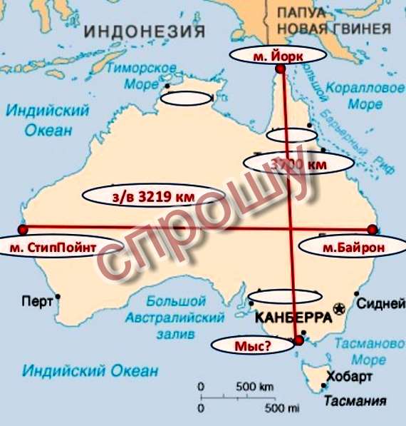 Помогите, пожалуйста! Определите по градусной сетке расстояние от крайних точек Австралии