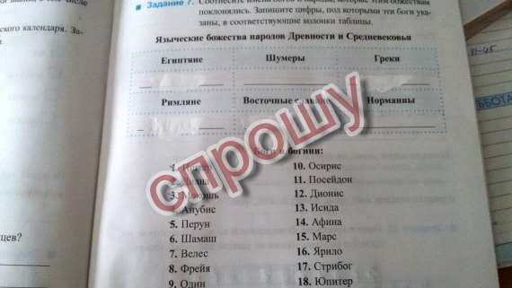 Соотнесите имена богов и народы, которые этим божествам поклонялись. Запишите цифры, под которыми эти боги указаны, в соответствующие колонки таблицы.