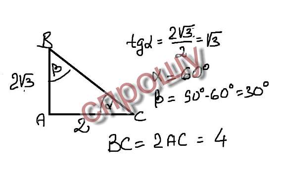Найдите острые углы и гипотенузу прямоугольного треугольника, если его катеты равны 2 под корнем 3 см и 2 см
