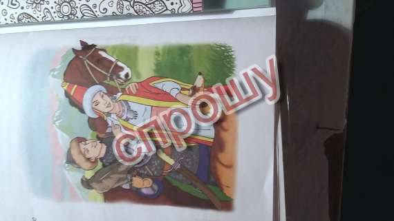 Бұл суретте қазақтың батыры мен айдай сұлу қыз бейнеленген. Ақылына көркі сай арудың жанында-құмай тазы.Ал батырдың қолында- қыран бүркіт. Және олардың артында- жүйрік арғымақ.
