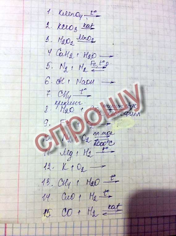 Уравнения реакций , 7 класс.