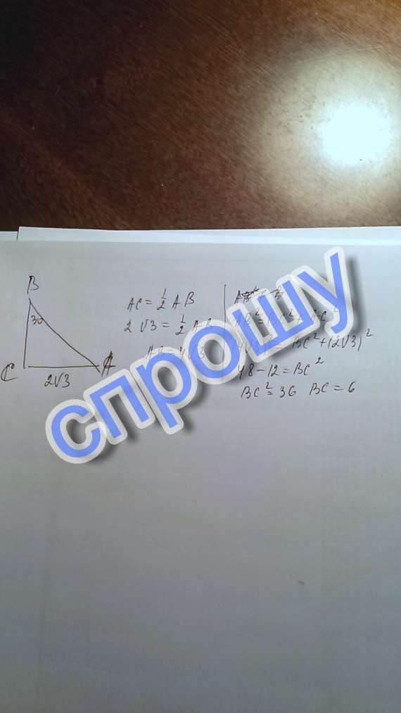 Найти длину катета ВС прямоугольного треугольника АВС с прямым углом если АС = 2√3 см угол В = 30°