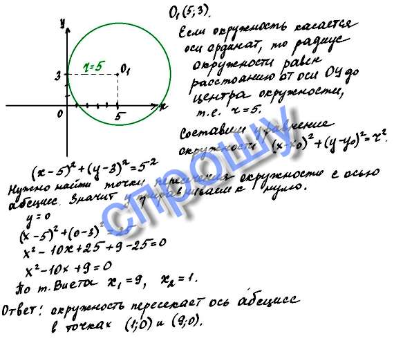 Окружность с центром (5; 3) касается оси ординат. В каких точках она пересекает ось абсцисс?