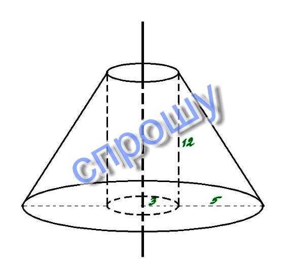 прямоугольный треугольникс катетами 5 и 12 см вращаетсявокруг внешней оси которая параллельна большему катету и отстоит от него на 3 см определить обьем и поверхность тела вращения.