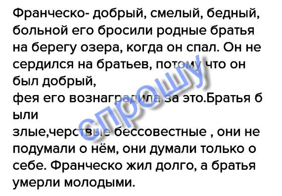 Помогите сочинить рассказ о Франческо из сказки *Дары феи Кренского озера.