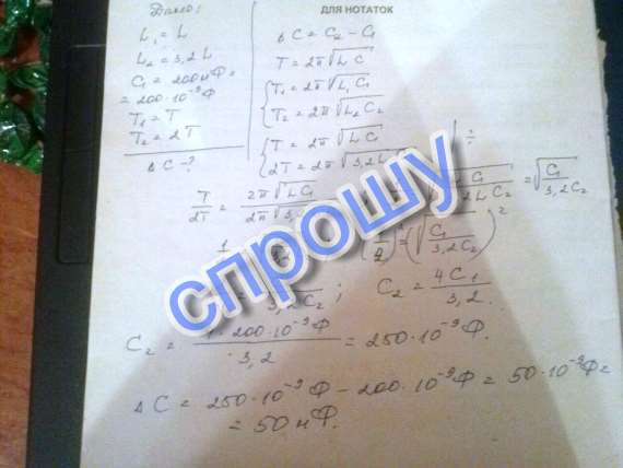 На сколько изменилась емкость конденсатора если при увеличении индуктивности катушки в 3.2 раза период колебаний увеличился в 2 раза? начальная емкость конденсатора 200нФ.