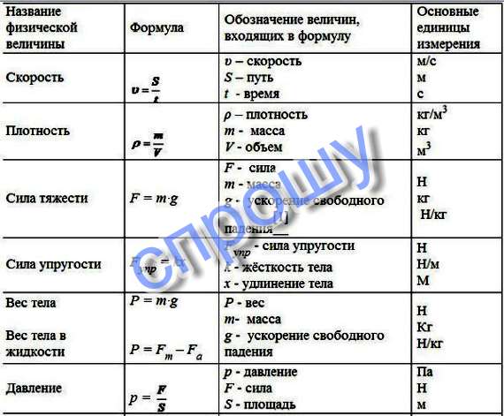 Формулы 7класс физика очеееень срочнооооо!