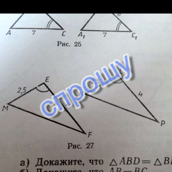 Докажите,что треугольники,изображённые на рисунке 27,равны