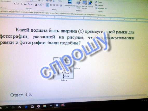 х=8*18:16=9см это сторона фотографии, следовательно расстояние между фото и рамкой равно