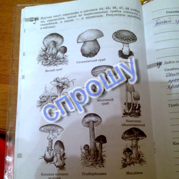 Поганка, навозник, сатанинский, желчный и мухомор к ядовитым, а остальные к съедобным
