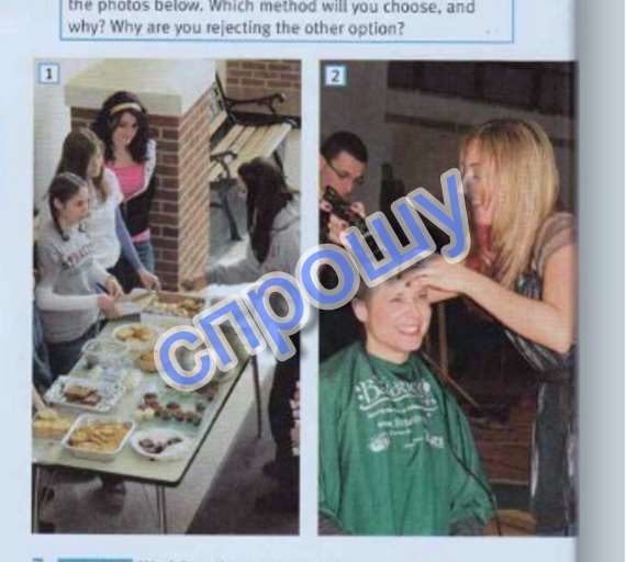 On the first photo look like buying the cookies.on the second photo -cut the hair