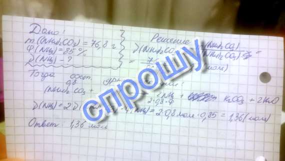 Вычисли сколько NH3 может образоваться из 76,8 гр (NH4)2CO3 , который прогрессировал с KOH ,если NH3 = 85%